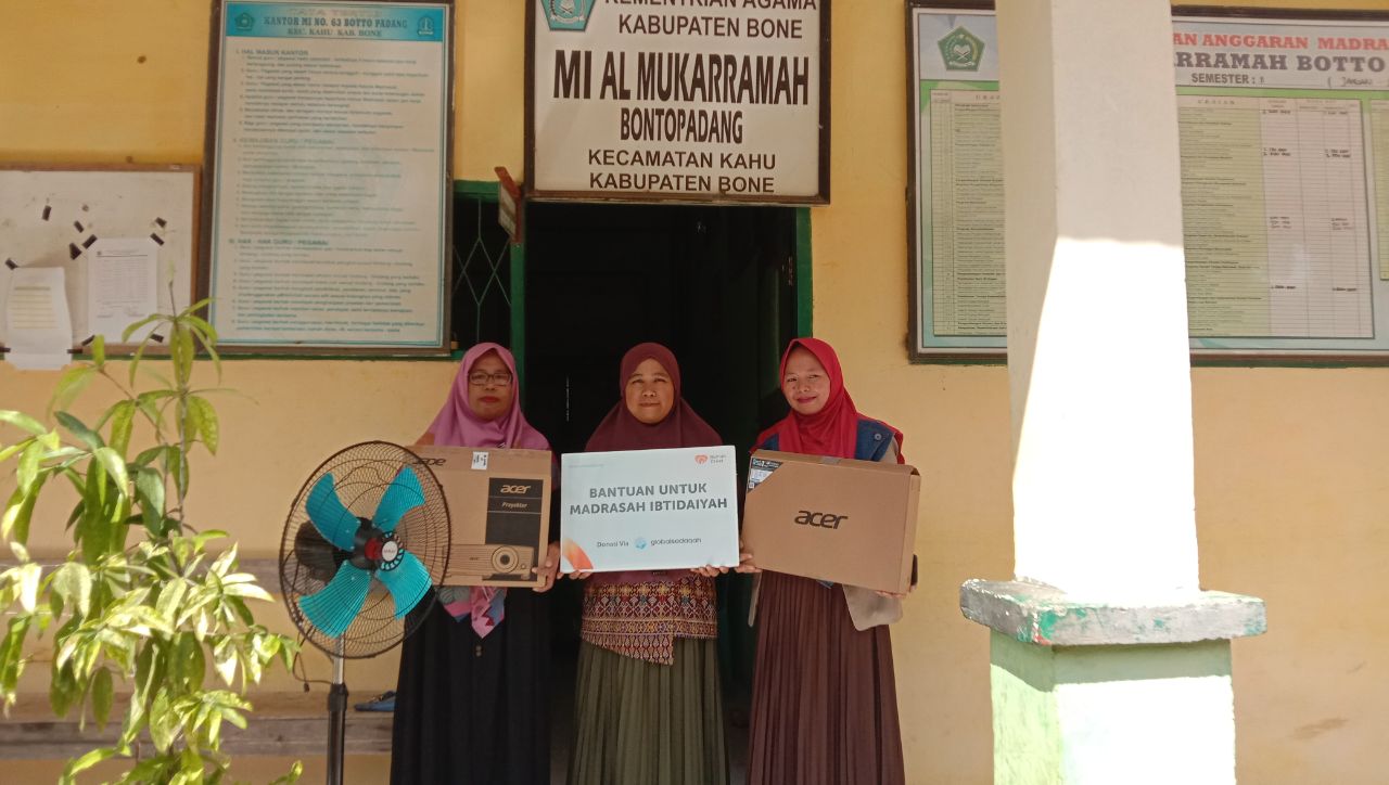 NusantaraInsight, Bone — Madrasah Ibtidaiyah (MI) Al Munawarah yang berdiri sejak tahun 1979 di Desa Bonto Padang, Kecamatan Kahu, Kabupaten Bone, menerima bantuan dari Rumah Zakat dan Global Sedekah, Selasa (27/6/2023).
