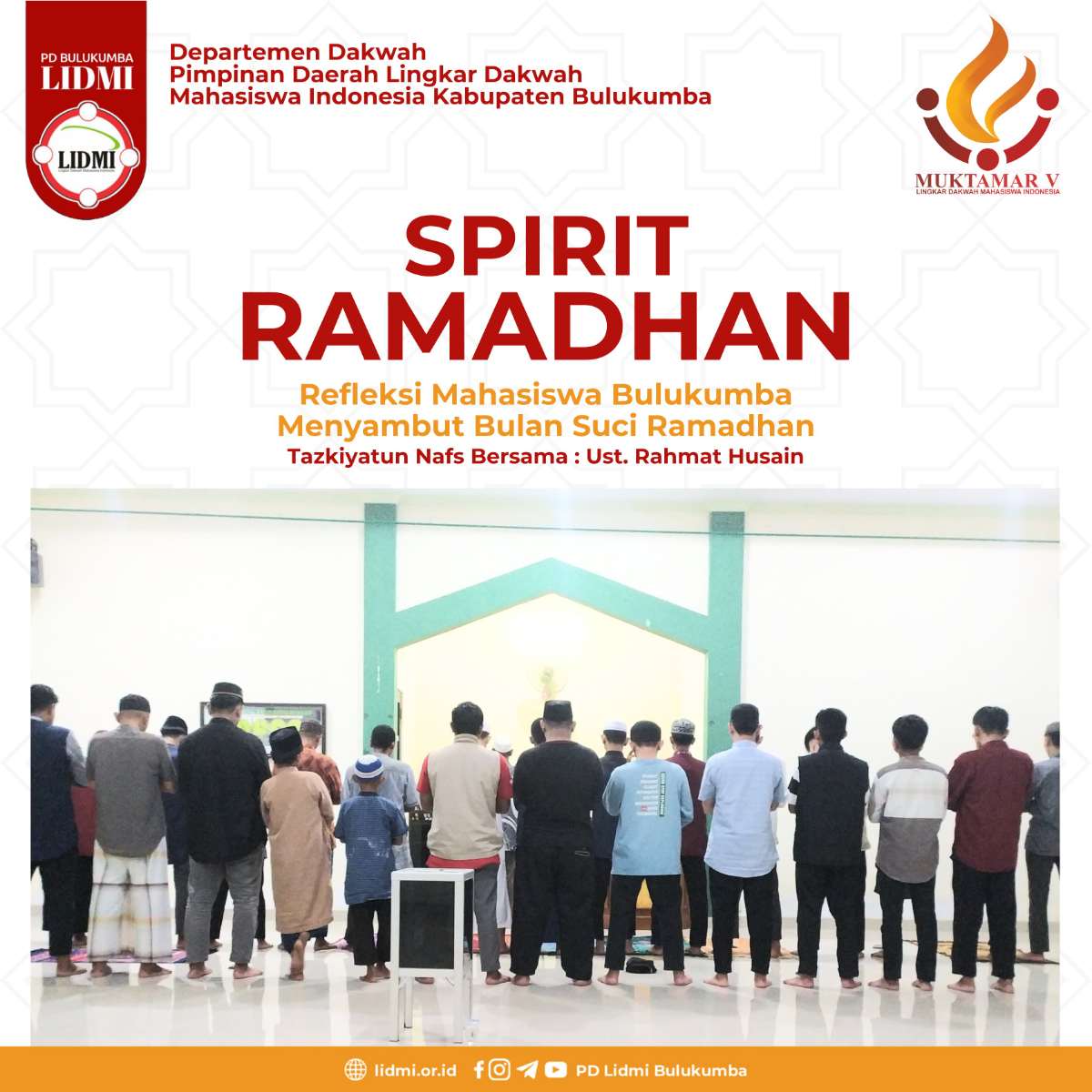 Tazkiyatun Nafs PD LIDMI Bulukumba ini bernama SPIRIT RAMADHAN, merupakan Program Nasional yang diadakan para aktivis dakwah Mahasiswa di seluruh Indonesia yang tergabung dalam OKP Kemahasiswaan LIDMI.