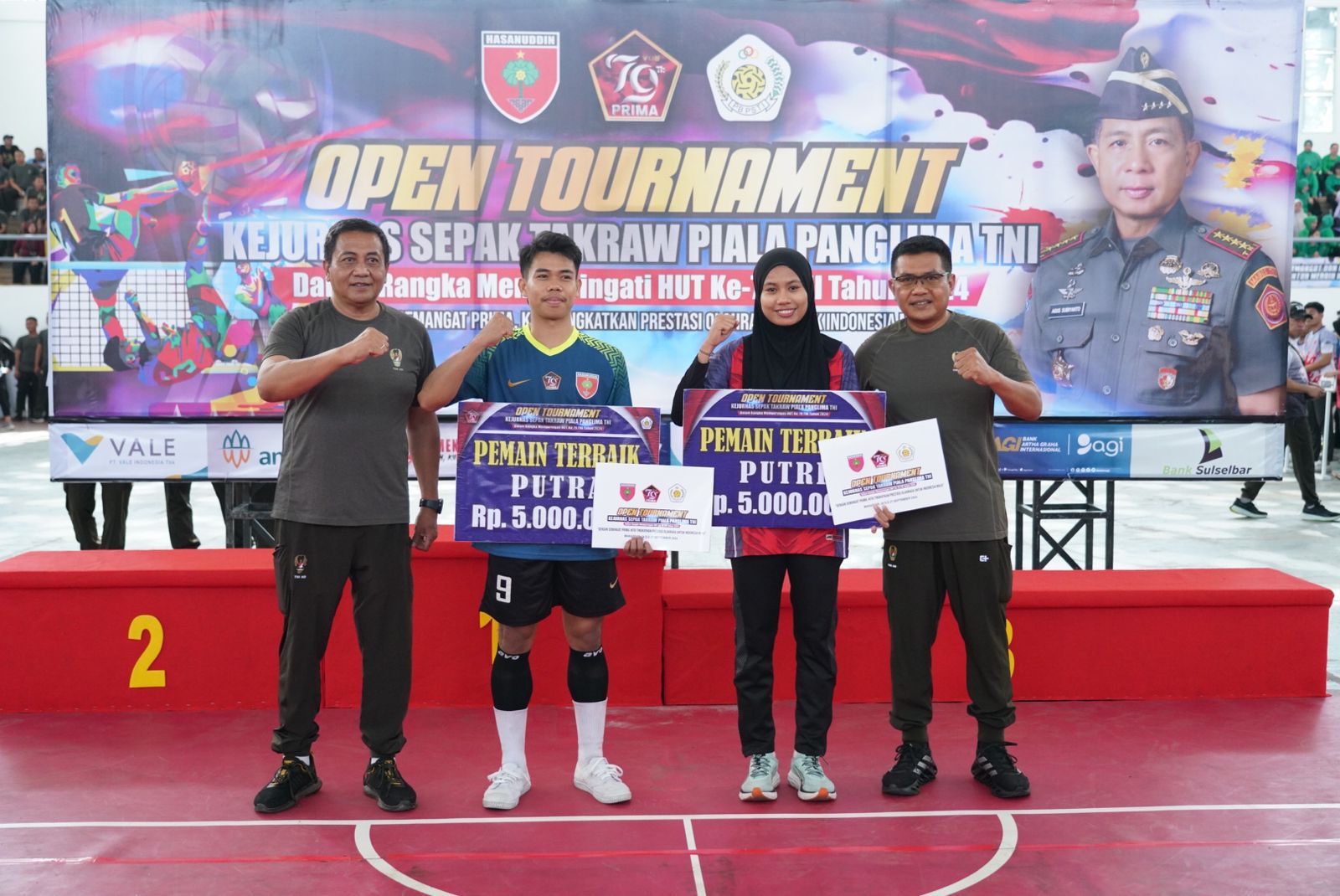 Penampilan memukau dengan teknik smash kerasnya, Rusdi dinobatkan atlet putra terbaik bersama Puji Anggi sebagai pemain putri terbaik Open Tournament Kejurnas Sepak Takraw Piala Panglima TNI 2024.