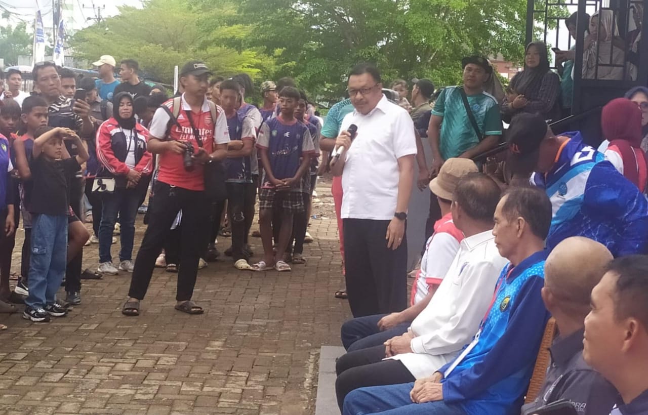 Ketua Umum PODSI Sulsel, Dr. H. Alimuddin SH MH, M.Kn, saat memberi sambutan menyampaikan apresiasi setinggi-tingginya kepada seluruh atlet, pelatih, dan official yang telah berjuang selama lima hari pelaksanaan.