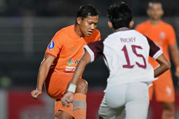 Tendangannya justru melambung menjulang naik ke atas mistar gawang Borneo FC.
