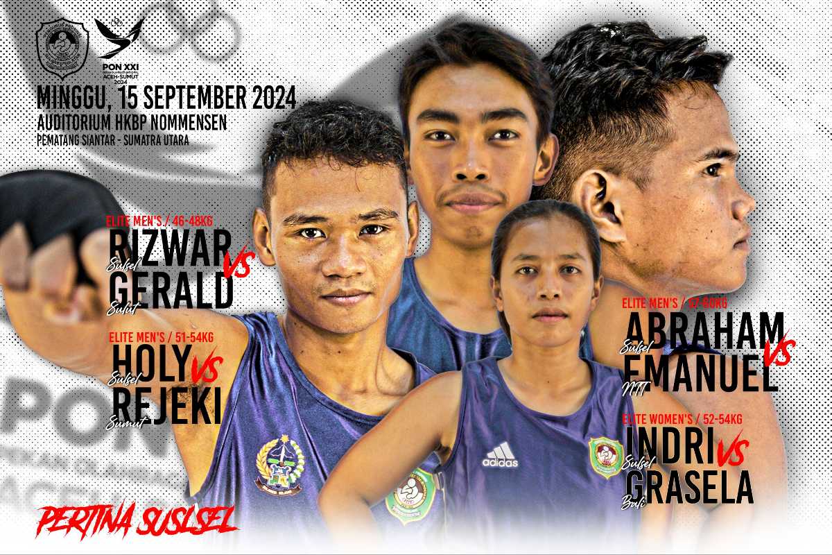 Pada pertandingan hari ke enam yang berlangsung di Auditorium Universitas HKBP Nommensen, Pematang Siantar, Sumatera Utara (Sumut), empat atlet Sulsel akan naik ring.