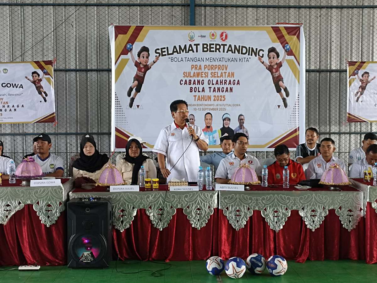 NusantaraInsight, Gowa — Wakil Ketua III KONI Sulsel Prof. H.M. Wasir Thalib, MS membuka secara resmi pra-porprov cabang olahraga bola tangan Sulawesi Selatan di Lapangan Futsal Bontonompo Gowa, Rabu 10 September 2025.