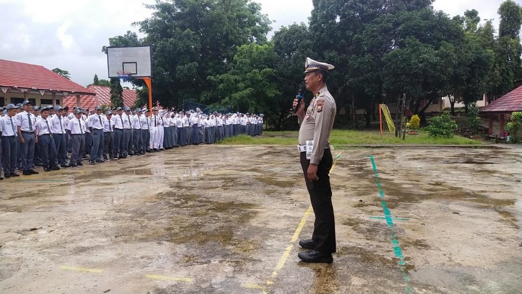 Pada kesempatan upacara bendera, Kaurbin Ops Sat Lantas Iptu Sulpakar, S.E bertindak selaku inspektur upacara dan menyampaikan pesan pesan keselamatan berkendara di hadapan siswa dan guru.