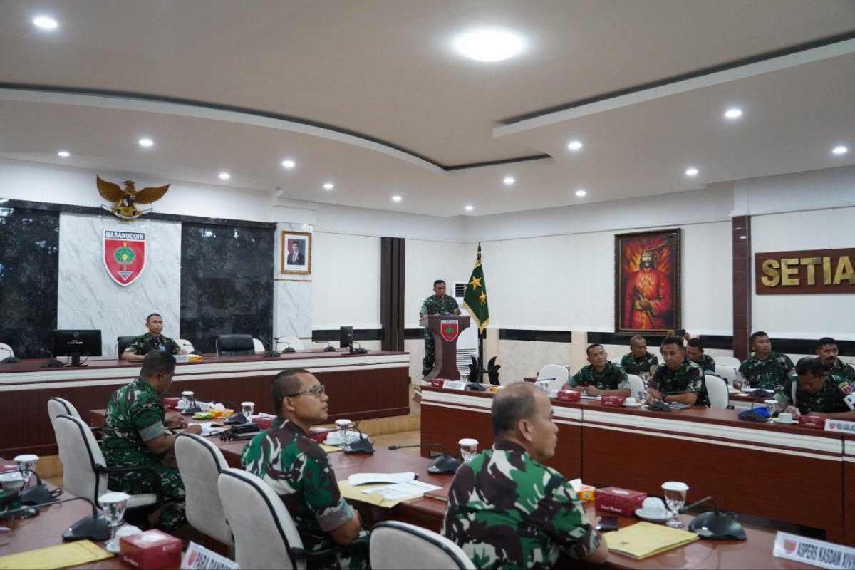 NusantaraInsight, Makassar — Kepala Staf Kodam (Kasdam) XIV/Hasanuddin, Brigjen TNI Rusmili, S.I.P., M.Si., menerima Paparan Rencana Garis Besar (RGB) Gerak Jalan Peleton Beranting (Tonting) Yudha Wastu Pramuka Jaya (YWPJ) TA. 2024, dalam rangka peringatan Hari Juang Infanteri Ke-76 TA. 2024 di Wilayah Kodam XIV/Hsn, bertempat di Ruang Bina Yudha (RBY) Makodam, Jl. Urip Sumoharjo, Kota Makassar. Kamis, (12/12/2024).
