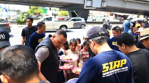NusantaraInsight, Makassar — Masih dalam rangkaian alumni dari Sekolah Inspektur Polisi dari angkatan 51 Polda Sulsel, Satya Intar Adinata Pratapa (disingkat SIAP) menjelang acara puncak perayaan anniversary yang ke 2 tahun, menggelar kegiatan berbagi dengan memberi makan siang gratis kepada warga dan pengguna jalan yang melintas di Jalan A.P.Pettarani (dibawah jembatan fly over),Kota Makassar. (5/10/2024).