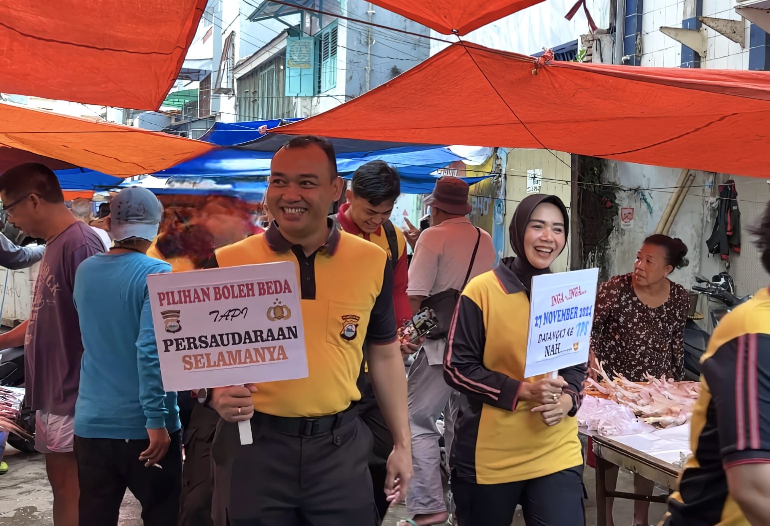 NusantaraInsight, Makassar — Demi menyukseskan Pilkada Serentak yang kondusif dan terkendali, Kapolres Pelabuhan Makassar AKBP Restu Wijayanto bersama personelnya menggunakan pendekatan yang unik. Mereka berjalan kaki menyusuri lorong-lorong hingga pasar-pasar tradisional di wilayah hukum Polres Pelabuhan Makassar.