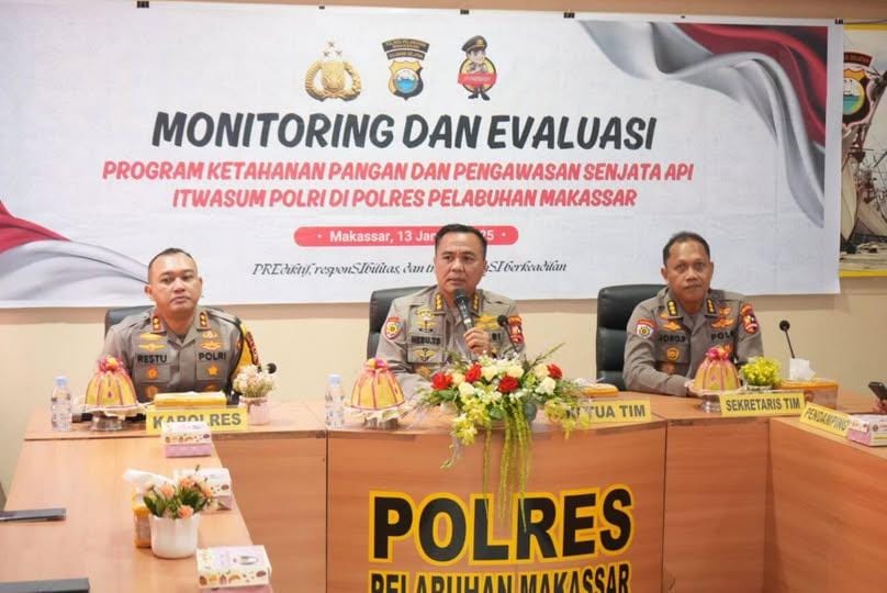 NusantaraInsight, Makassar — Tim Monitoring dan Evaluasi (Monev) Ketahanan Pangan dan Pengawasan Senjata Api (Senpi) dari Itwasum Polri melakukan kunjungan kerja di Polres Pelabuhan Makassar
